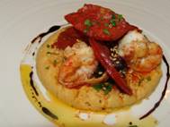 of the recipe: WILD SHRIMP ON CHICKPEA PUREE AND SPICY SAUSAGE |